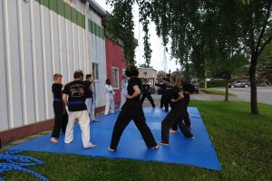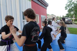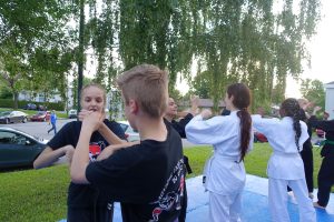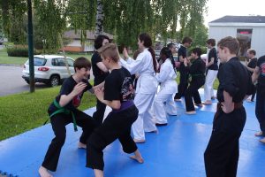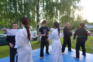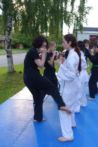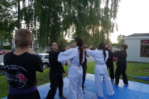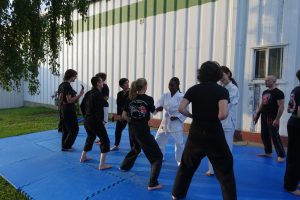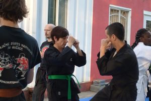 Combat libre (Kumite) : Application des techniques dans un cadre sécurisé, avec partenaire.