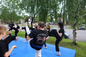 Pratique des frappes avec les poings (tsuki), les pieds (geri) et d’autres parties du corps.