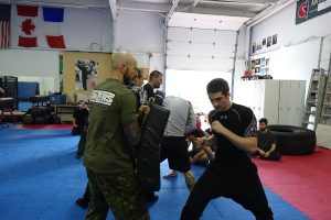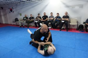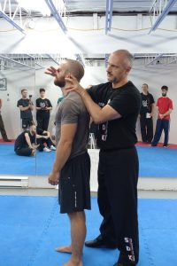 Simulation de situations réelles d’agression (attaques frontales, saisies, étranglements, etc.).