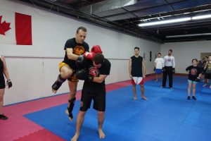 Pratique des techniques de clinch (combat rapproché) pour maîtriser l’adversaire.