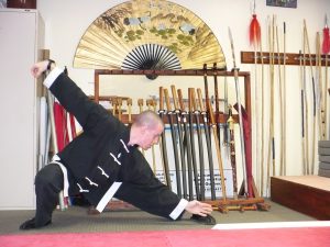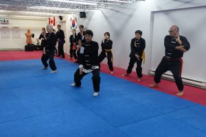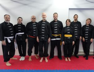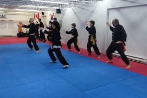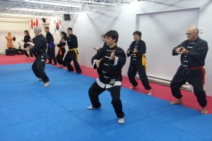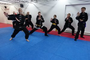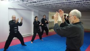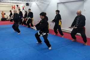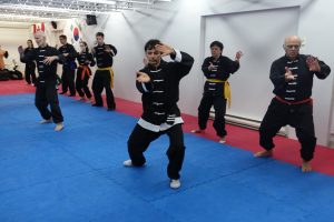 Exécution de formes, qui sont des enchaînements de mouvements lents et précis, inspirés des techniques d’autodéfense traditionnelles.